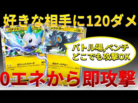 ワザ「ボルテージアロー」は120ダメージを好きな対象に飛ばす効果で、相手のバトル場にいるポケモンを無視してポイントを取得することができます。