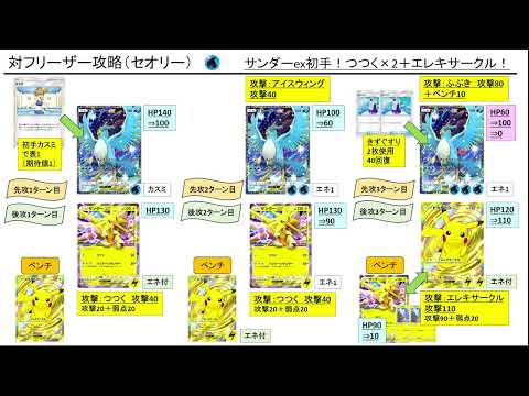 サンダーexが壁役として機能しやすく、ベンチに下げたあとも「エレキサークル」の打点増強要員になる 最終盤に出てきやすい大型exポケモンに対してもサンダーexの「ハリケーンサンダー」でトドメも狙える |