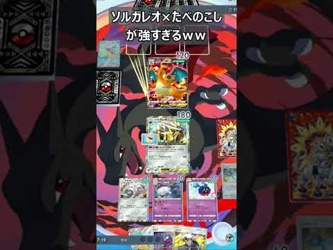 マシェードやニンフィアexなどのドロー加速ギミックを使い最速でソルガレオexを着地させるデッキ たべのこしは「ポケモンのどうぐ」のため 鋼タイプ型のエアームドともシナジーがある |