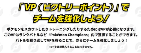 Pokémon Championsは基本プレイ無料+一部アイテム課金ありのタイトルですが、VPは課金で購入することはできません。