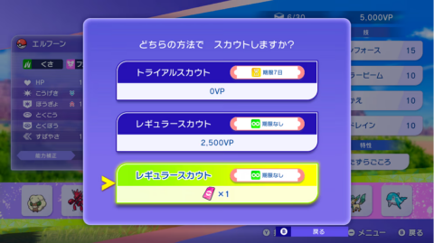 VPを使用する代わりに無期限でポケモンをスカウトできます。