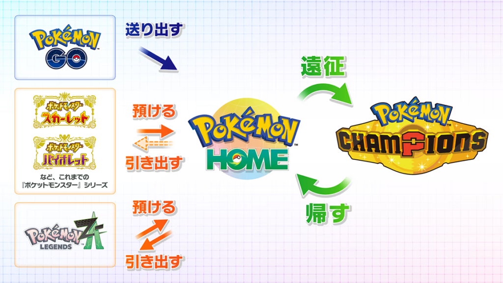 - Pokémon Champions内で入手したポケモンは、Pokémon HOMEに預けることはできません。