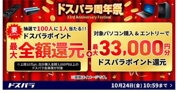 【ドスパラ周年祭】2025年10月最新セールは最大33,000円分ポイント還元!