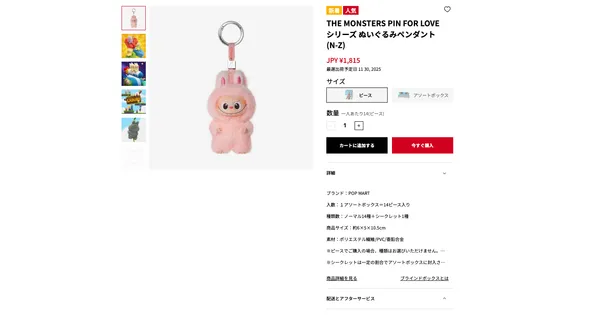 ラブブ再販情報!ポップマートで再販受付中 – THE MONSTERS PIN FOR LOVE シリーズ ぬいぐるみペンダント