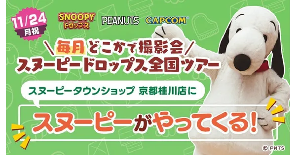 スヌーピードロップス、毎月スヌーピーに会える!11月は京都桂川で開催!