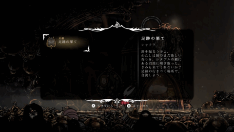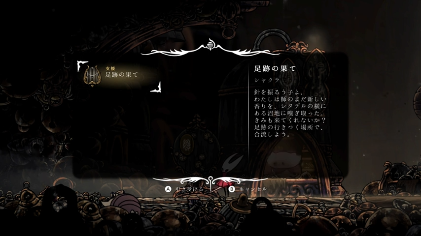 シャクラからマップをすべて購入し、胆液の沼のボスを討伐するとベルハートのボードからタスク「足跡の果て」を受注できるようになります。