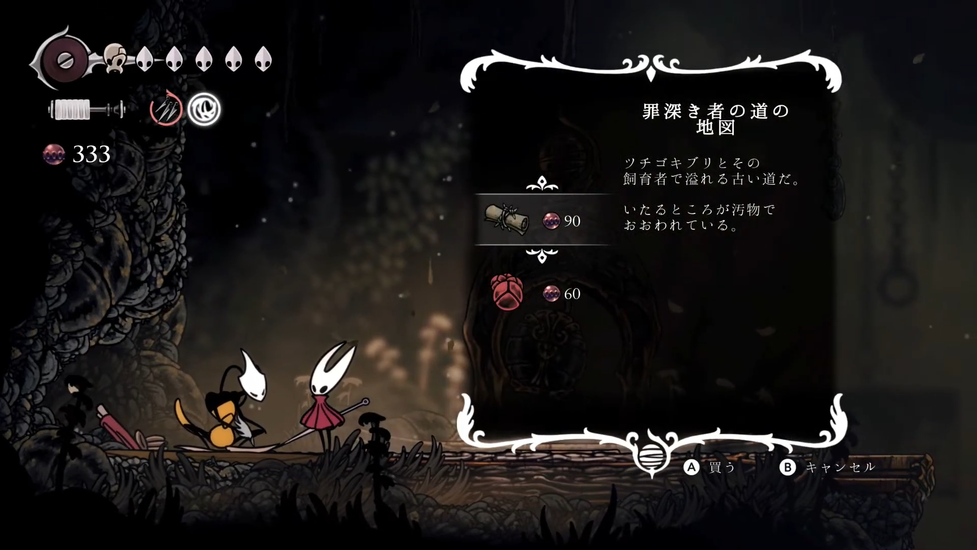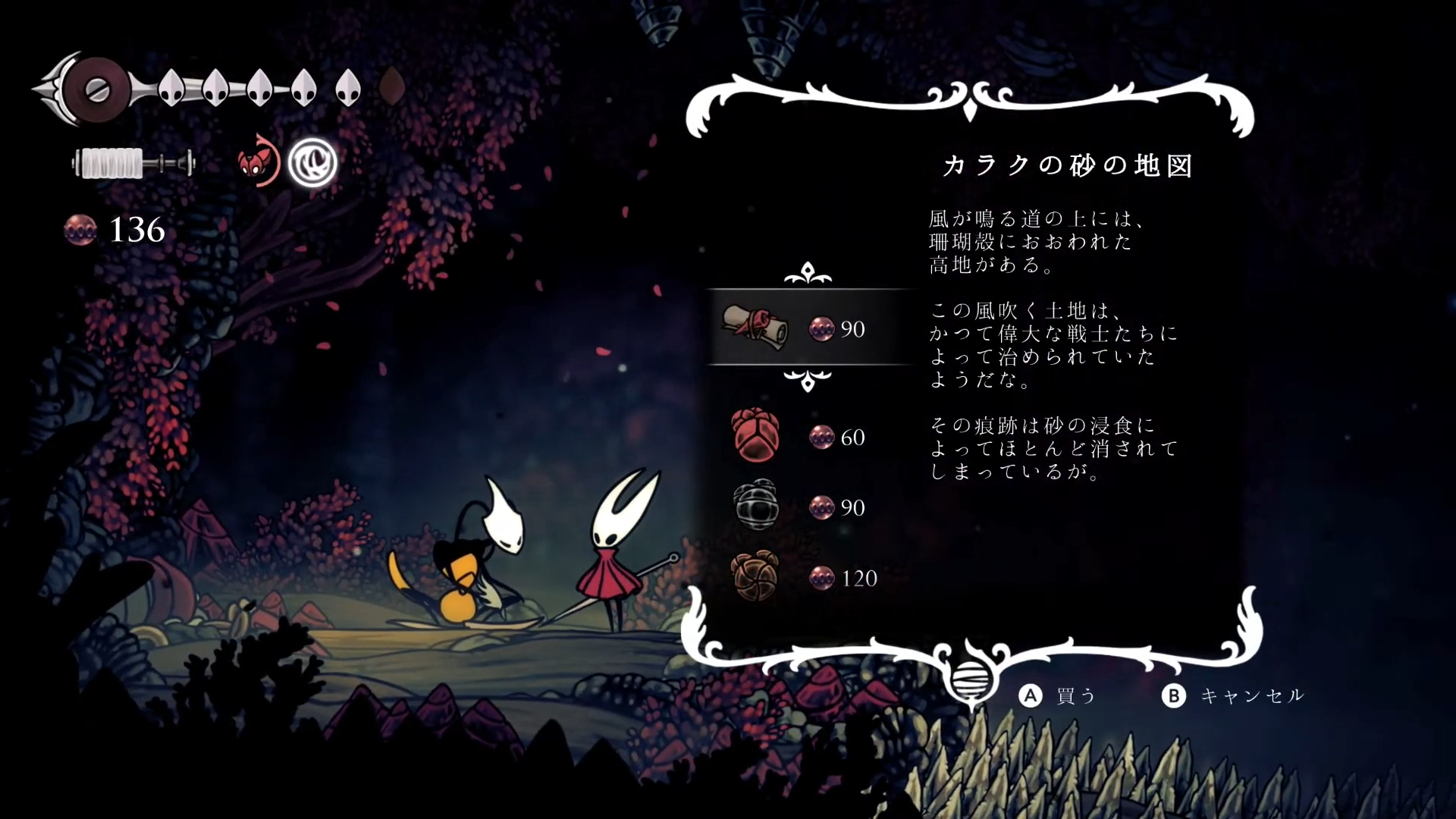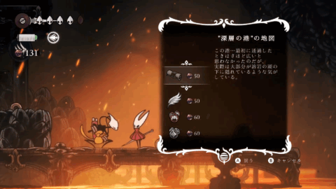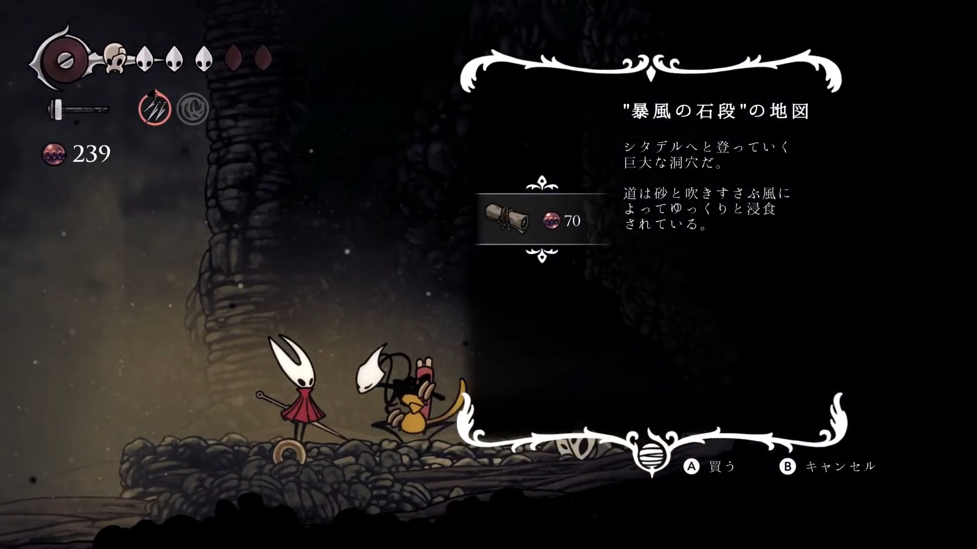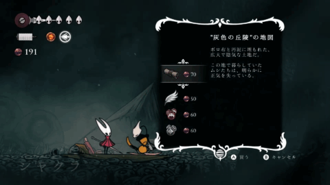 シルクソングにおける地図は、特定のNPCから購入することで手に入ります。探索の序盤から入手できるため、見つけたらすぐに手に入れておくのがおすすめです。