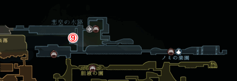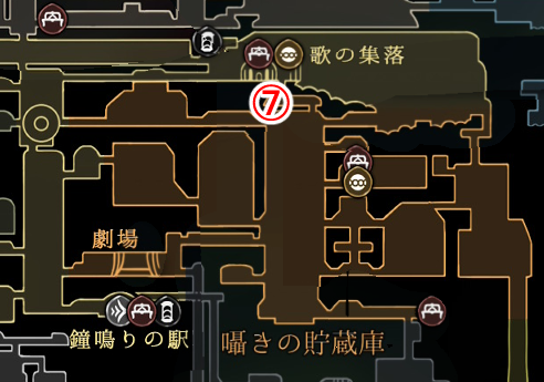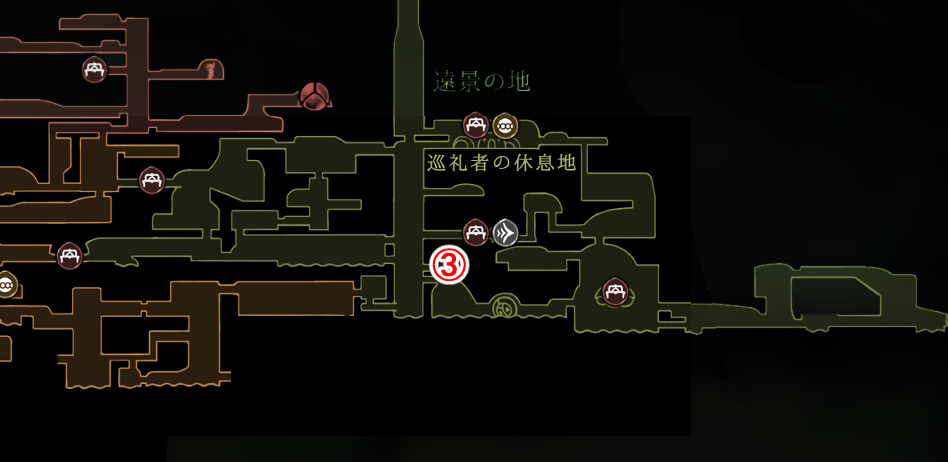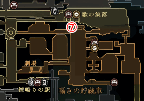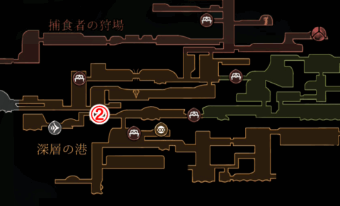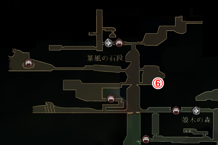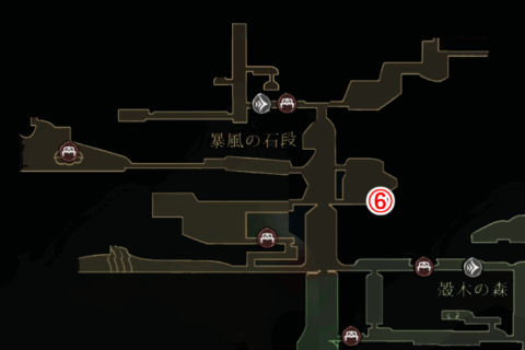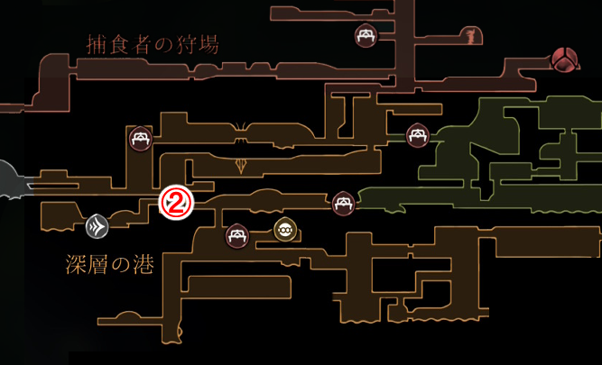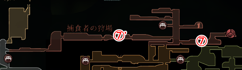 捕食者の狩場 ⑦’俊敏なる脚入手前に訪れた場合、戦闘後に地図購入可能 |