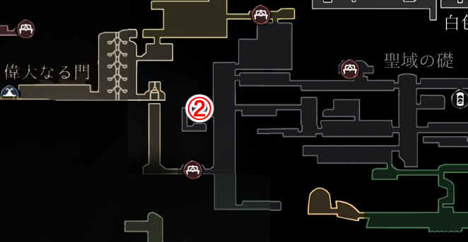 入手前に訪れた際は、⑦’の位置で雑魚ラッシュをシャクラと攻略したのちその場で購入することができます。