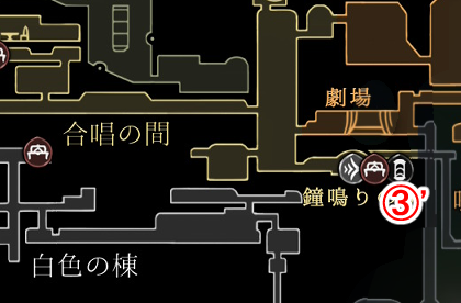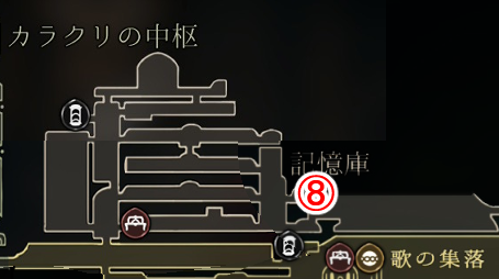 カラクリの中枢の地図はベンチのあるフロアの上部に移動し、設置されているスイッチを踏むことで入手できます。