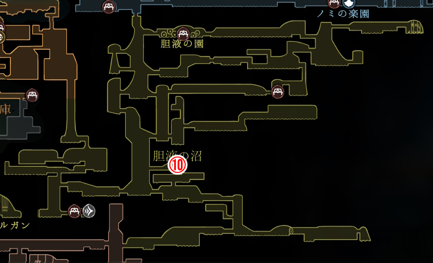 悪臭の水路の地図は敵につかまってフロア上部に移動することで、地図のある場所まで移動することができます。