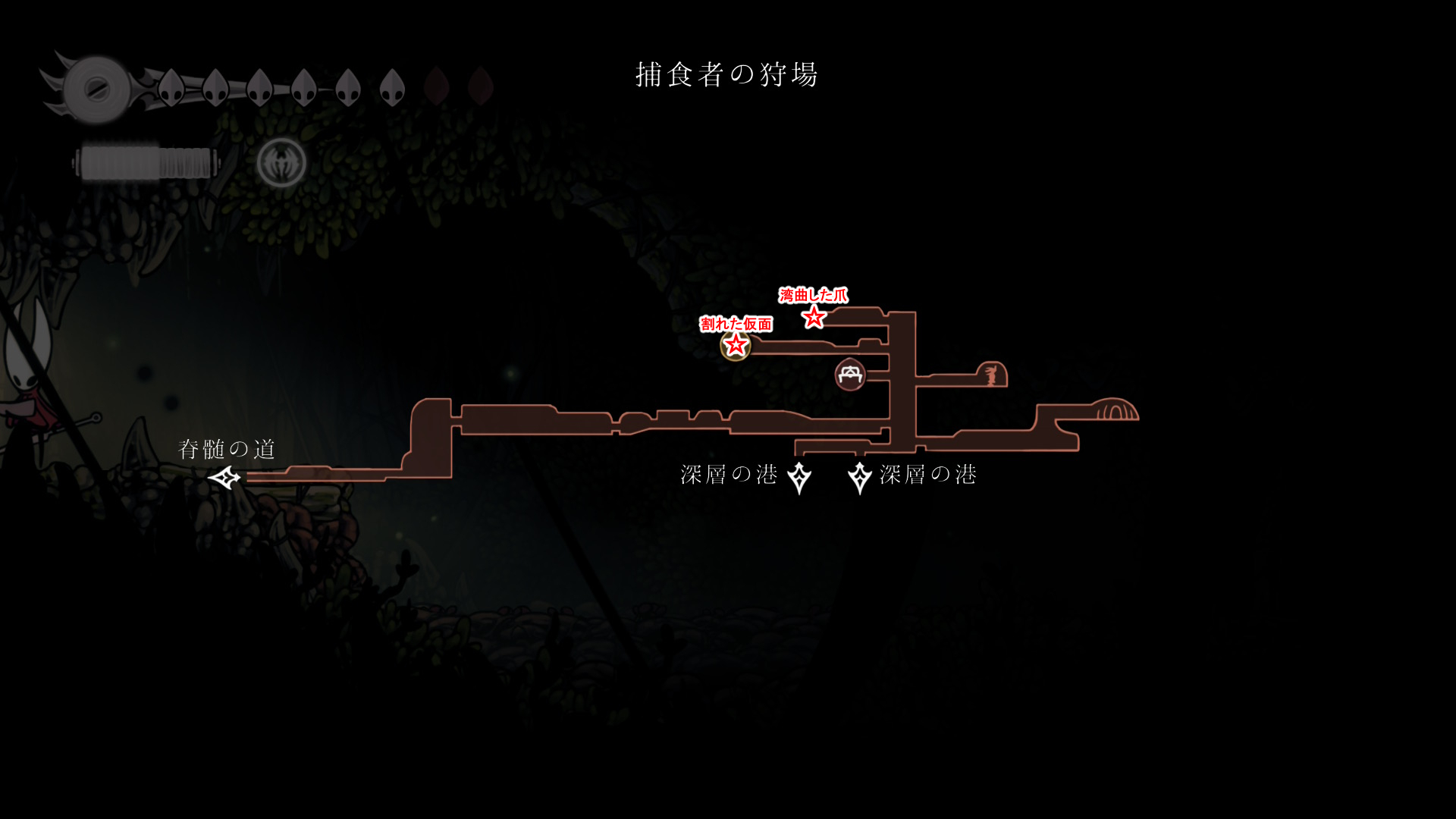 捕食者の狩場のショップNPC・まだらのスカールが販売している「割れた仮面」と「湾曲した爪」は以下のマップの場所で入手できます。