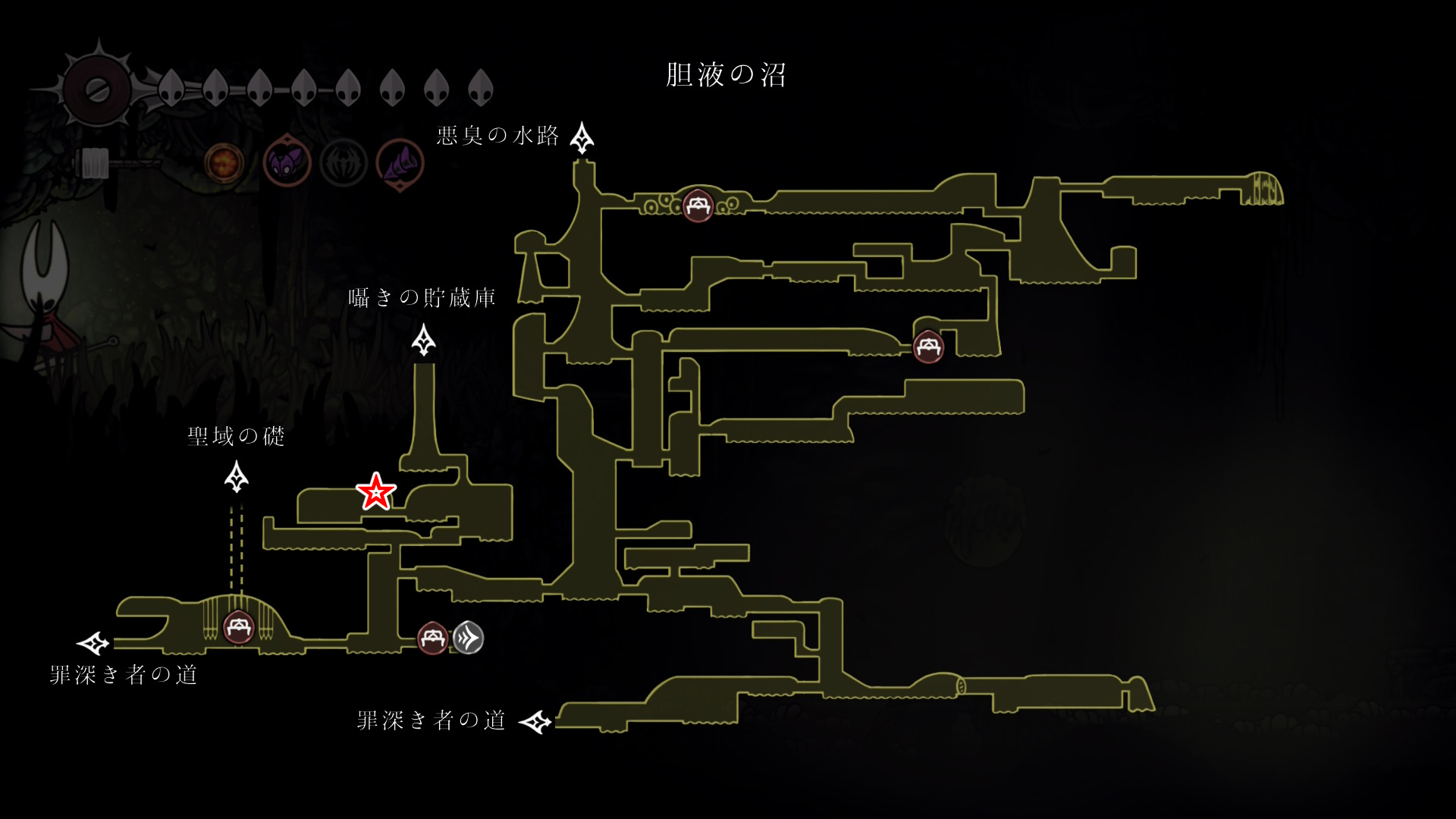 この後からアイテム・シルク回復等使えなくなるため注意 - 「魔導者のチャペル」を左側に抜けて殻木の森に戻る
