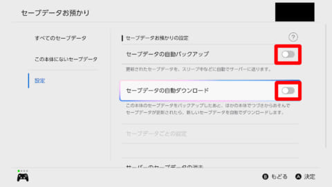 セーブデータお預かり機能では初期設定で自動バックアップと自動ダウンロードがONになっています。