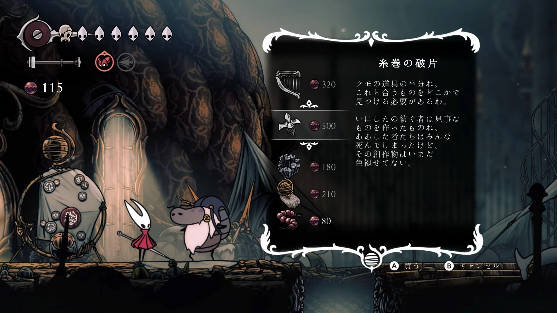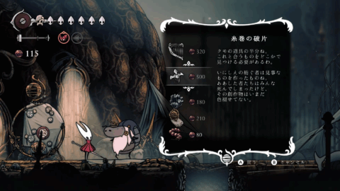 シルクソングにおける「糸巻の破片」は、ホーネットのシルクゲージ上限を増やし、冒険を格段に快適にするための非常に重要なアイテムです。