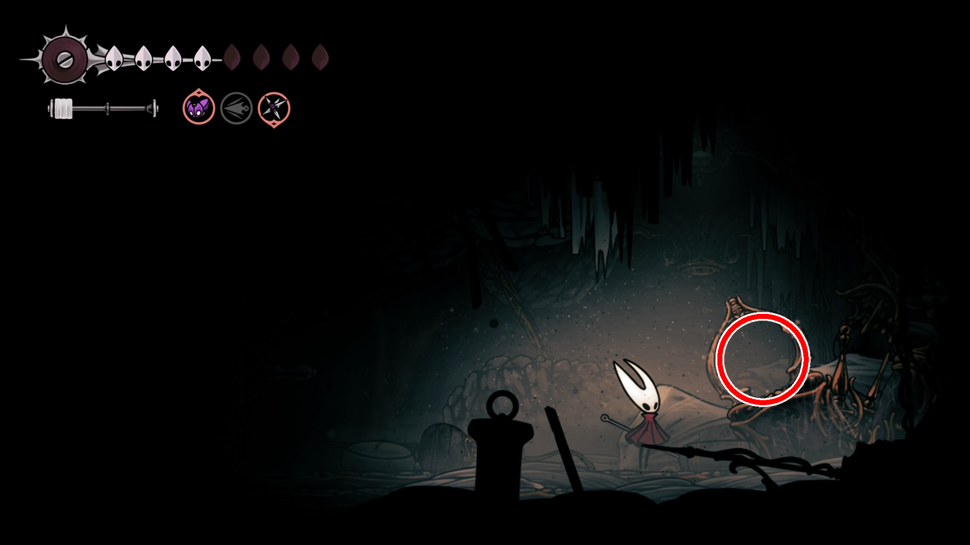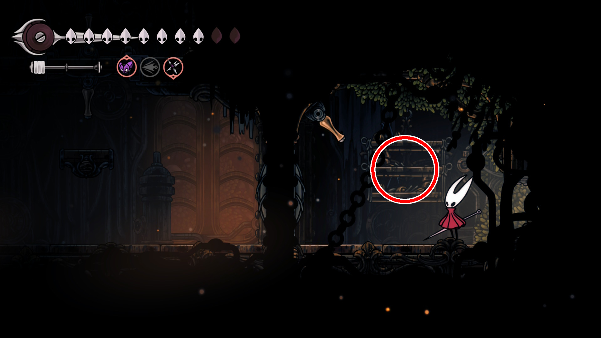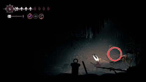 その後はシルクの銛とダッシュを駆使し、ギミックを越えて糸巻の破片まで到達してください。