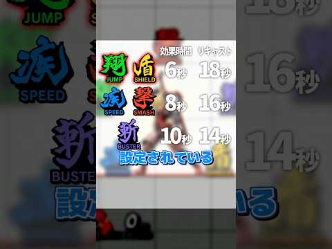 ・疾(スピード)/地上での移動速度約1.7倍、空中での移動速度約1.3倍、攻撃力約0.7倍→約0.8倍、ジャンプの高さ約0.8倍