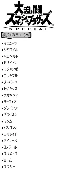 == 『大乱闘スマッシュブラザーズ SPECIAL』【キャラクター】 ==