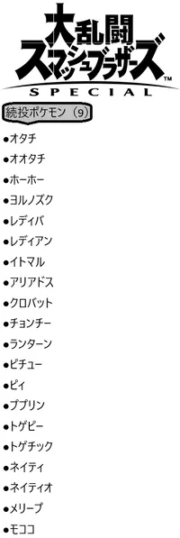 == 『大乱闘スマッシュブラザーズ SPECIAL』【キャラクター】 ==