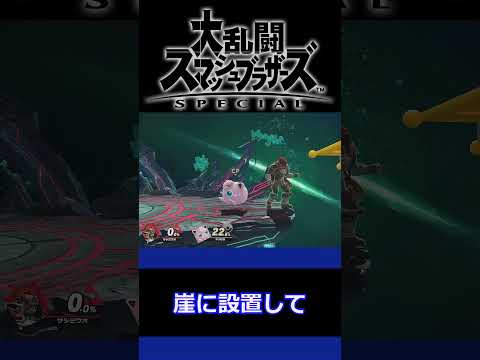 投げてから一定距離を飛ぶと、空中や地面に設置される。ガケ際に置くと、復帰の阻止に効果的。