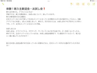 えーと。新しく入られました方は、この、新入生歓迎会などを開催しようと思います。そのためには、新入生歓迎会…お試し会担当者を決める事が最優先!