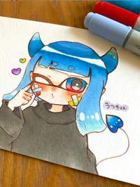 すげぇ…_:(´ཀ`」 ∠):インクから出来てるみたいな感じめちゃくちゃ好きです…イカちゃん特有のカクカクしてる手も上手い…お忙しい中描いていただいてありがとうございます…‼︎