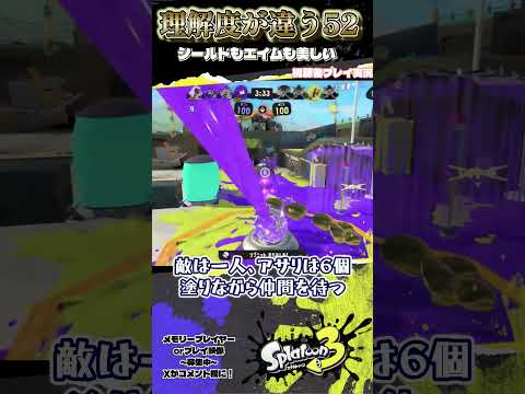 ・サブがスプラッシュシールドなので、サブがスプラッシュボムやキューバンボム、ロボットボムなどの固形ボムを、.52ガロンが対面している裏側から投げることでキルを取ることができます。