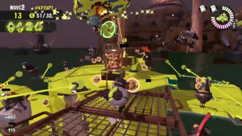 オオモノシャケが湧く方向がばらばらのため、味方が見ていない湧き方向を見るようにします。