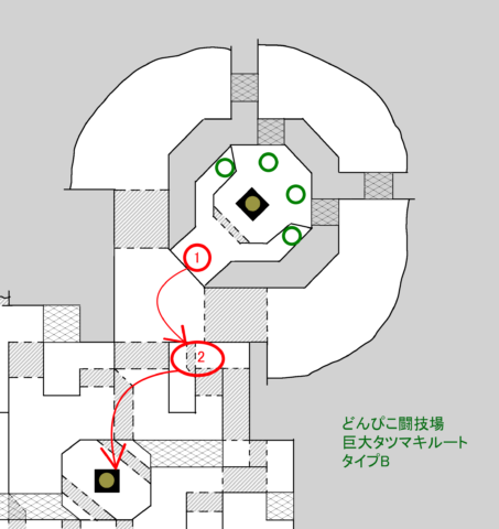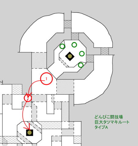 どんぴこ闘技場のタツマキには上記タイプA・Bの2ルートあります。