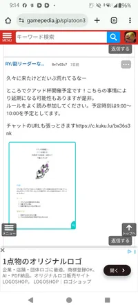 えー今日のクアッド杯は9:00~です。 チャンネル名はクアッドでお願いします。部屋を立てたら報告します。人数少なくてできない可能性もありえなくは…