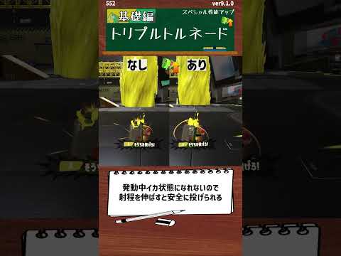 ・起動してから終了まで相手はイカ状態になれないためかなり無防備です。さらにガイド装置が起動してから竜巻が起こるまで少し時間差があるため、起動中の相手を思い切って倒しに突っ込んでも充分に倒しきれるスペシャルです。