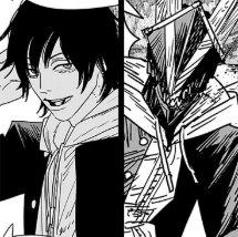 デビルハンター部部長兼生徒会長で胸にはデンジと同じスターターロープをつけている男子高校生です。チェンソーマンに憧れていて、少しでも近づくために手術でスターターロープをつけました。 チェンソーマン協会の顔として活動していましたが、チェンソーマン協会の解体運動によって捕らえられ、悪魔収容センターに入れられました。そこでアサたちに助けられ、デンジが本物のチェンソーマンであることに衝撃を受けました。 |