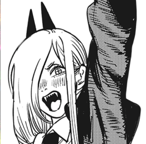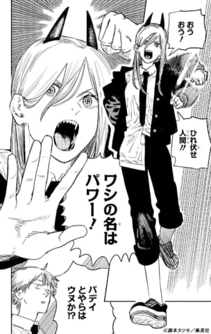 パワーは命は平等に軽く、パワー自身の命も軽いので誰が死んでも悲しむことはないと考えていますが、デンジだけは「初めてできた友達」なので見捨てることはできずに、ゾンビの大群やデビルハンターたちの「カマキリの悪魔」の攻撃を受け、下半身がなくなるほどボロボロになったパワーはデンジと一緒にダストボックスの中に逃げ込みます。