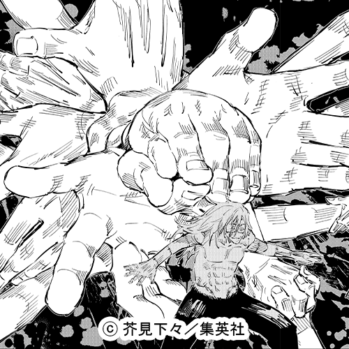再会した真人は、領域展開「自閉円頓裹」を発動しようとしますが、虎杖は宿儺の術式「御廚子」を極めたと見られる「解」の斬撃を、手印を結ぶことなく全方位に放ち、真人を圧倒的な力で瞬殺しました。