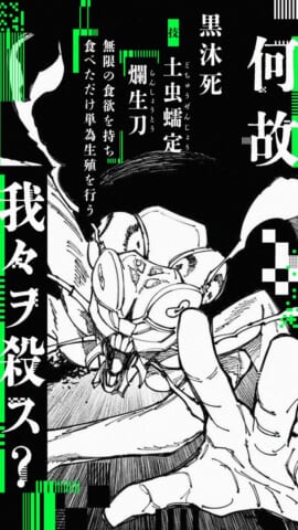 黒沐死は「瞎、瞎、瞎(くらい)」と三回唱えることで、式神「土中蠕定(どちゅうぜんじょう)」を召喚します。