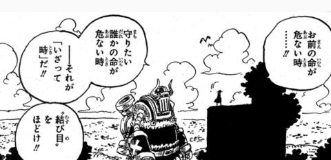 ジョイボートの覇気が詰まったロープの結び目はエメト自身、もしくは誰かが危ないときに、ジョイボーイの覇気が詰まったロープの結び目をほどくというものでした。