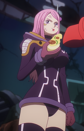 ▼改めて2人のエッグヘッド編の服装を見てみると、軍子のパンツスタイルと似ていますね。