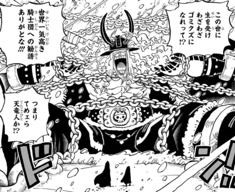 天竜人が宇宙服を装備している理由は、下界の人間と同じ空気を吸うことが汚らわしいからで、一般人と隔絶した存在であることを示しています。