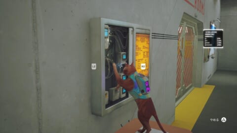 セキュリティロックを解除するため、コントロールルーム内の鍵マークがある場所で配電盤をひっかきます。