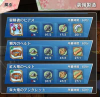 メインクエスト 上級前半で 体 親方のベルト 知 冒険者のピアス 心 人鬼族のリング 力 紫大鬼のブレスレット 技 ドワーフ族のネックレス 速 朱大鬼のアンクレット が、ドロップします。