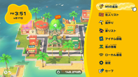 深夜になるとMiiたちが眠りはじめたりと、自分の島での生活は現実の世界の時間とほとんどリンクしています。