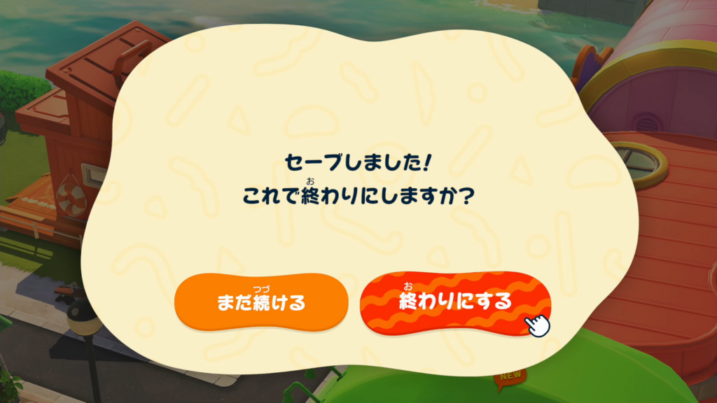 Xボタンを押して「セーブ」を選択し、ゲームを終了します。