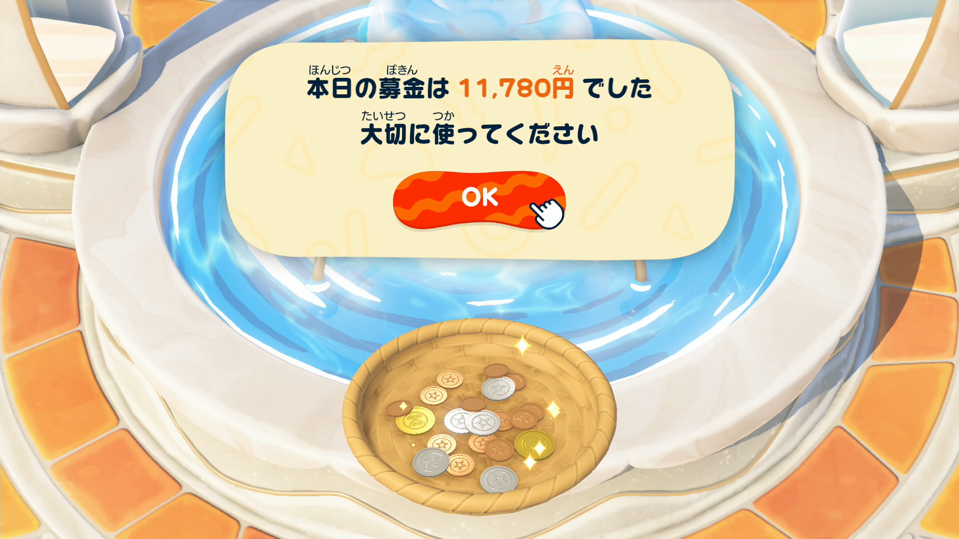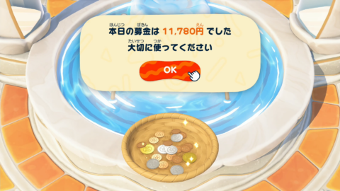 願いの噴水は1日1回募金を受け取れます。序盤は金額が大きくなくても、毎日回収する習慣を作るだけで差が出ます。ゲームを開始したら、まず回収するようにしていきましょう。