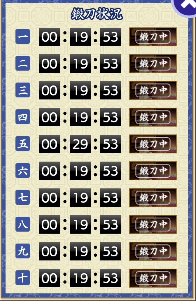 10回分の鍛刀を短縮するためには手伝い札は10枚必要となるため、ご注意ください。