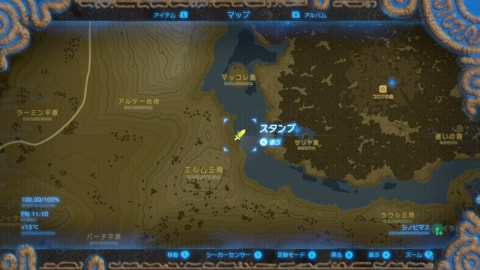 ハイラル大森林内にある、 クン・シダジの祠 にワープして目の前にある水場がサリア湖です。