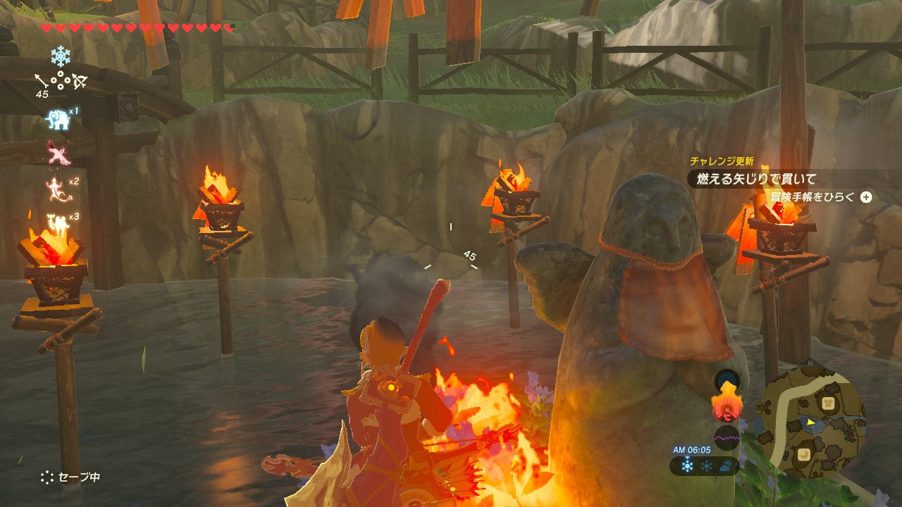 ゼルダの伝説 ブレス オブ ザ ワイルドに登場するミニチャレンジ「燃える矢じりで貫いて」の発生場所や攻略情報、獲得報酬などを掲載しています。