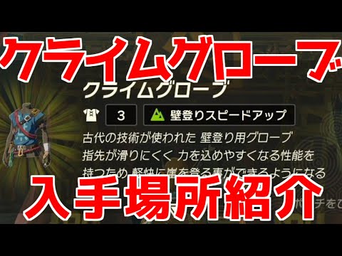 ゼルダの伝説 ブレス オブ ザ ワイルドに登場するアイテム「クライムグローブ」の効果・能力、入手方法、使い道などを紹介しています。