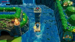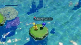 2つ目を取ったら開始地点まで戻り、今度は右下の柱を通って水の中に入って上に登ります。上から柱の上に降りトリィの仲間を見つけましょう。