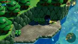 3つ目の位置から、水を進んで上まで戻ったら、北方向に進みます。木を登って足場を北へ渡ると洞窟があり、洞窟の中にトリィの仲間がいます。