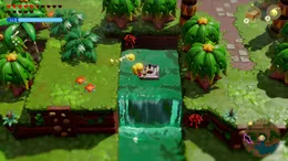 左に進み、バクダン魚をシンクで水流に流されないようにしてブロックに当てて爆破し、自分は上から水流に乗って隙間に入り、トリィの仲間を助けましょう。